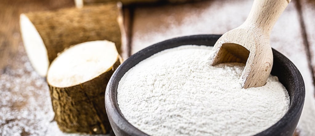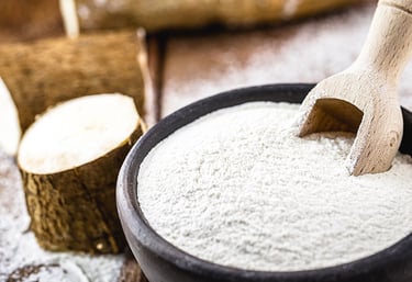 Almidón puro extraído de yuca fresca, ideal para exportación.